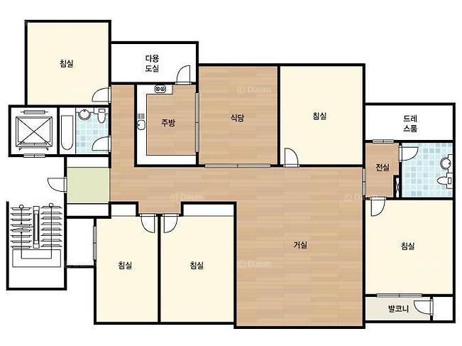 2. 여유로운 대형 평형 (방 5개 / 욕실 2개) 전용 면적이 약 **60평(195.43㎡)**에 달하는 대형 타입입니다. 방이 5개로 구성되어 있어 대가족 거주는 물론, 서재나 취미 공간을 별도로 꾸미기에도 매우 넉넉합니다.